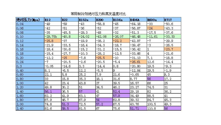 在制冷劑流量一定時,蒸發壓力越低,蒸發溫度越低,這時與熱負荷(熱風)的溫差就越大,制冷量越大,換言之,蒸發壓力越低制冷量就越大,并且相同質量的同一制冷劑,在不同的溫度下蒸發,其蒸發潛熱也不相同,蒸發溫度越低,蒸發潛熱也越大,吸熱能力越強。