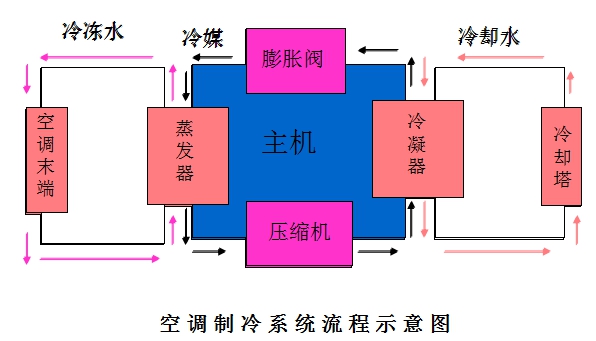 水冷機(jī)組空調(diào)系統(tǒng)的主要設(shè)備: