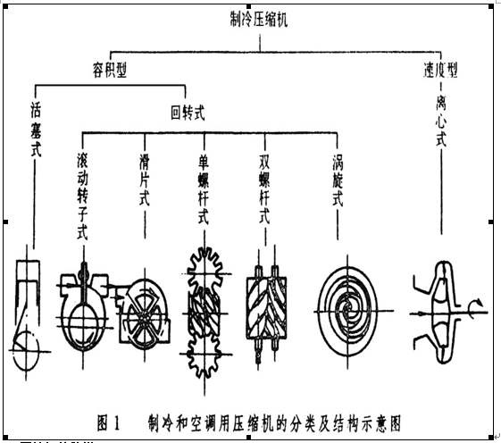 目前常用的壓縮機(jī)主要有活塞式壓縮機(jī)、渦旋式、螺桿式以及離心式壓縮機(jī):