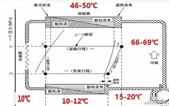 很多同行都沒有聽過“排氣過熱度”概念,“排氣過熱度”:壓縮機的排氣管(或者冷凝器進口溫度)與冷凝壓力對應的飽和溫度之差。
