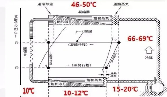 按照經驗,空調系統的蒸發溫度=環境溫度 —(10~15℃);我們以夏天(房間內設定溫度22℃)空調為例子: