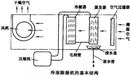 一般來講,冷凍除濕機主要是由蒸發器,冷凝器,壓縮機,膨脹閥,風機和外殼等部分組成的;