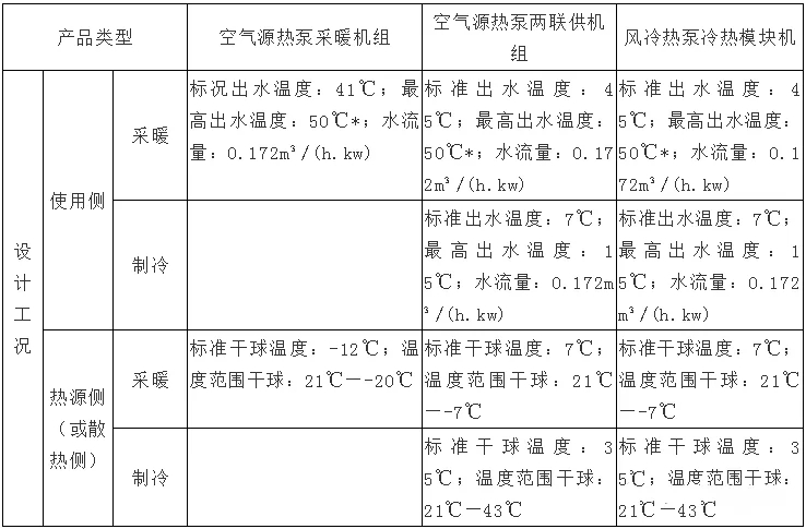 其實(shí),對于空氣源熱泵兩聯(lián)供機(jī)組來說現(xiàn)在市場上一般會(huì)按使用區(qū)域不同分為低溫機(jī)和常溫機(jī),低溫機(jī)也參照GB/T25127.1GB/T25127.2常溫機(jī)參照表中所列。