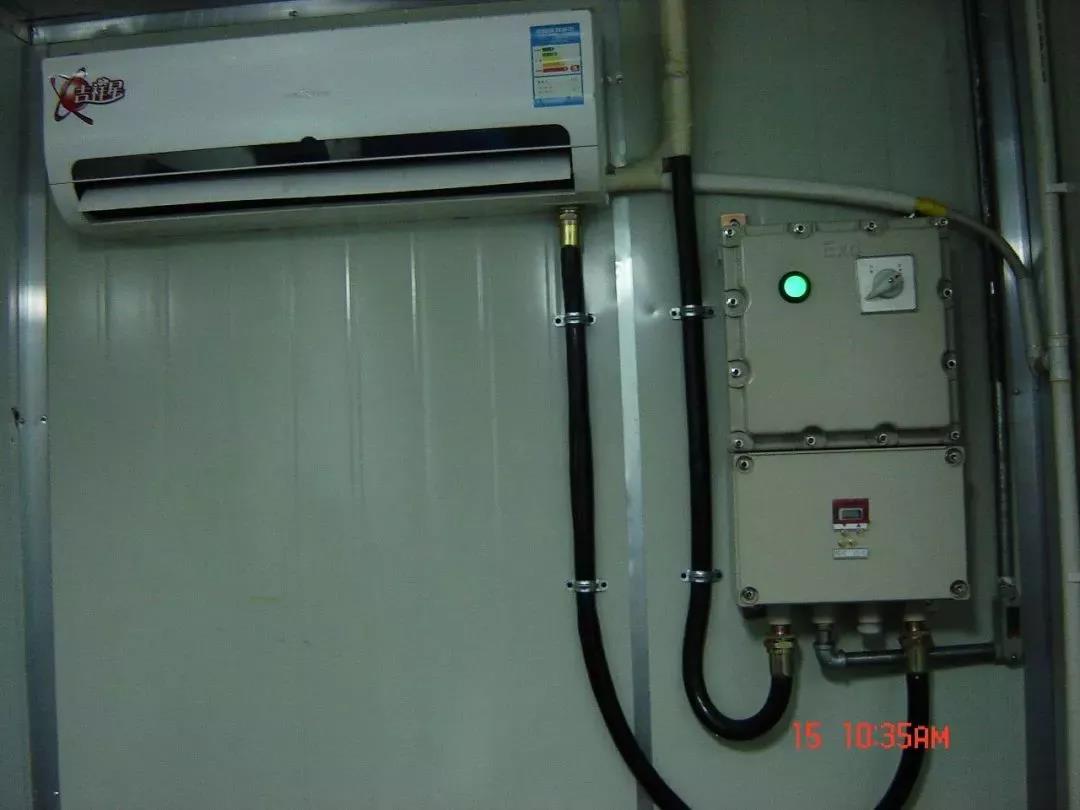 工業(yè)防爆空調(diào)保持普通空調(diào)基礎上,對電氣系統(tǒng),包括壓縮機、風機、電氣線路進行防爆處理。控制線路采用以光耦固態(tài)繼電器為核心的電氣制系統(tǒng)進行整體防爆,原保持原來空調(diào)的基本功能下,簡化結(jié)構(gòu),簡化操作,使設備在性混合氣體環(huán)境中能安全使用。