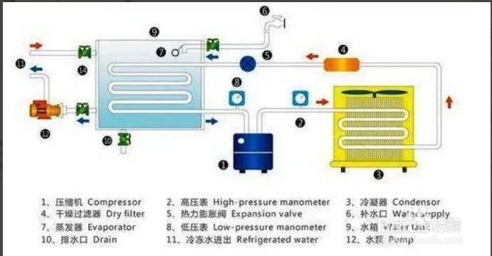 例:求冷(熱)水機制冷量的計算方法,有一蓄水箱(溫度7度日容量10立方米),要通過冷水機將水在4-5小時之內(nèi)將溫度升高到15度,需要多少熱量,需要壓縮機的功率是多少,是怎樣計算。