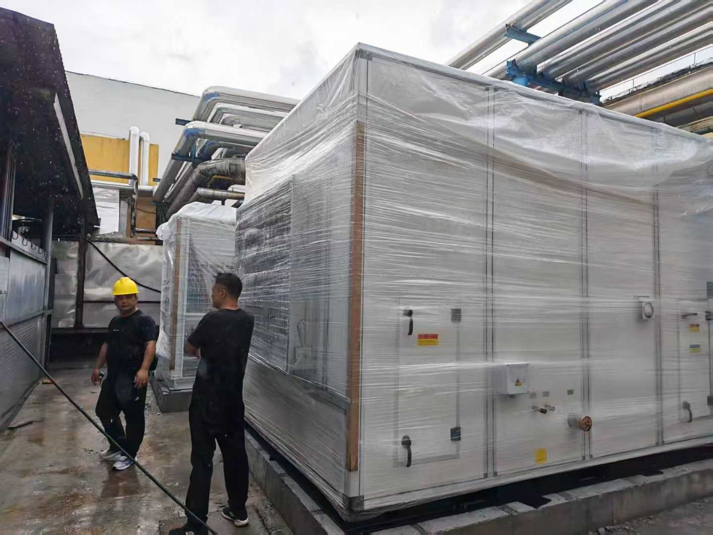 該設備在45000立方米/小時風量下,可應對溫度38℃、相對濕度90%及以下的氣候條件,除濕后出風空氣含水量達2531/立方米,空氣溫度不低于10℃。設備總電源為三相四線380V120KW,需配置約120平方電纜。