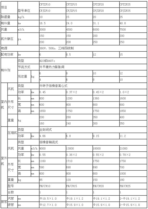 注:手動風冷調溫型機組參數同上,型號在表中自動調溫機組型號基礎上去字母“Z”。