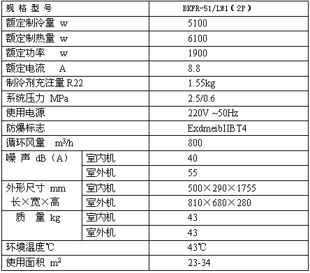 BKFR-51/LW1防爆空調(diào)技術(shù)參數(shù)